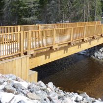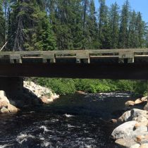 La Société de développement des parcs régionaux de la Matawinie, en collaboration avec plusieurs intervenants économiques locaux, a mandaté Larocque-Cournoyer SENC afin de réaliser les plans et devis d’un nouveau pont multifonctionnel au-dessus de la Rivière Ouareau, près de la Municipalité de Chertsey. Ce pont sert à une multitude d’utilisateurs : piétons, cyclistes, quads, motoneiges, camionnettes, voitures, etc. Il s’agit d’un pont en portée simple avec trois poutres d’acier de 33 m de longueur. Les poutres sont appuyées sur des culées en béton armé, dont une qui est ancrée sur le galet de roc. Le tablier sur lequel les usagers circulent est réalisé en bois traité. Ce projet a été réalisé en collaboration avec l’ingénieur Jocelyn Ricard qui est bien établi dans la région.